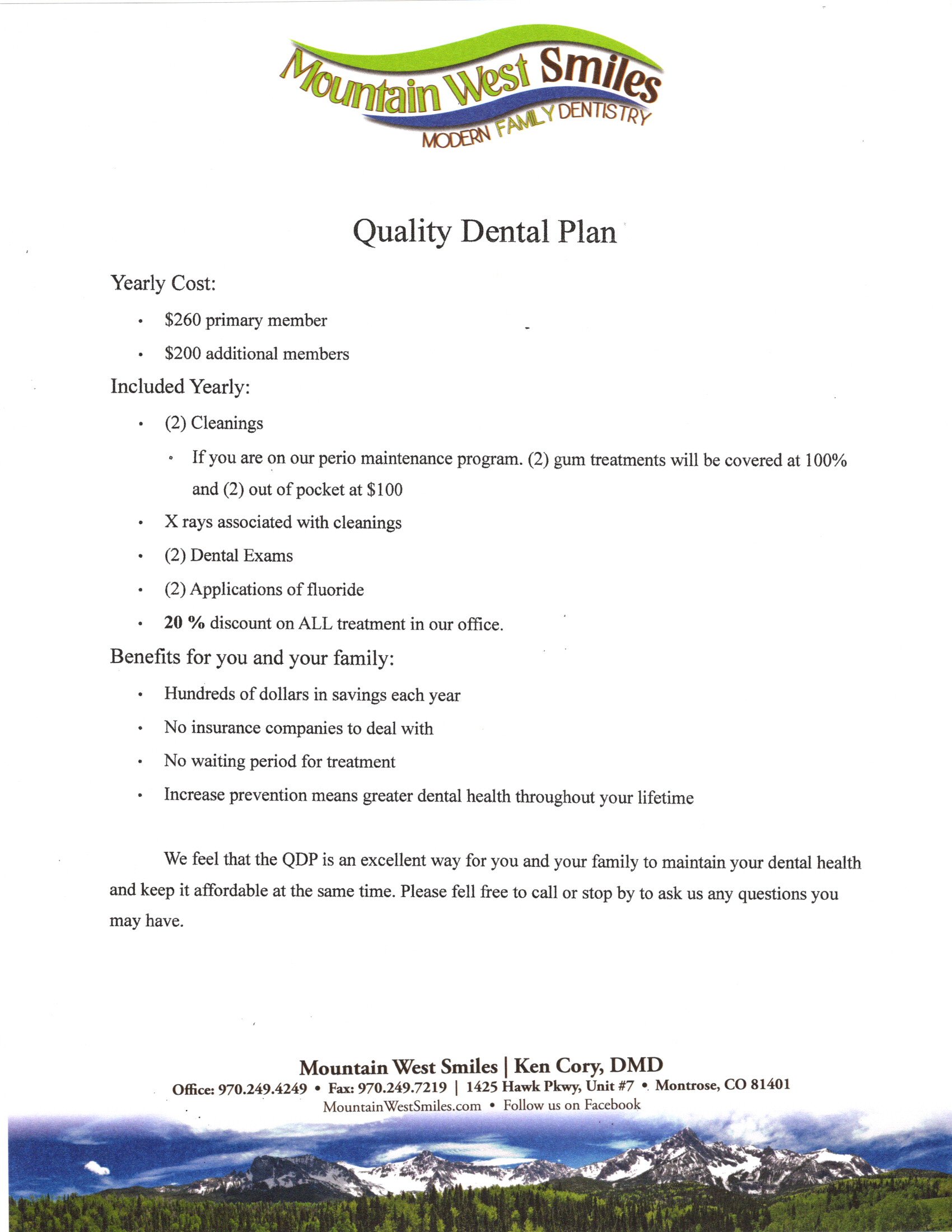 Mountain West Smiles welcomes you to experience comprehensive dental care in the heart of the beautiful Rocky Mountain town of Montrose. Dr. Ken Cory and our highly skilled dental team provide most treatments right in our office, from routine cleanings to emergency care. Our focus on continuing education and the latest dental procedures ensures you receive the most comfortable and advanced dentistry available.