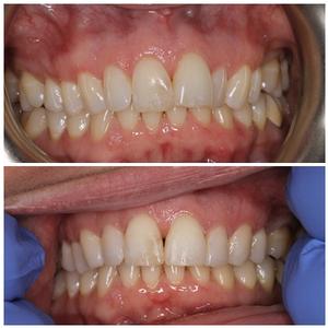 This patient was unhappy with her crooked teeth. Montrose dentist Dr. Cory used Six Month Braces to gently straighten and realign her teeth for this beautiful result. Treatment time only took six months!
